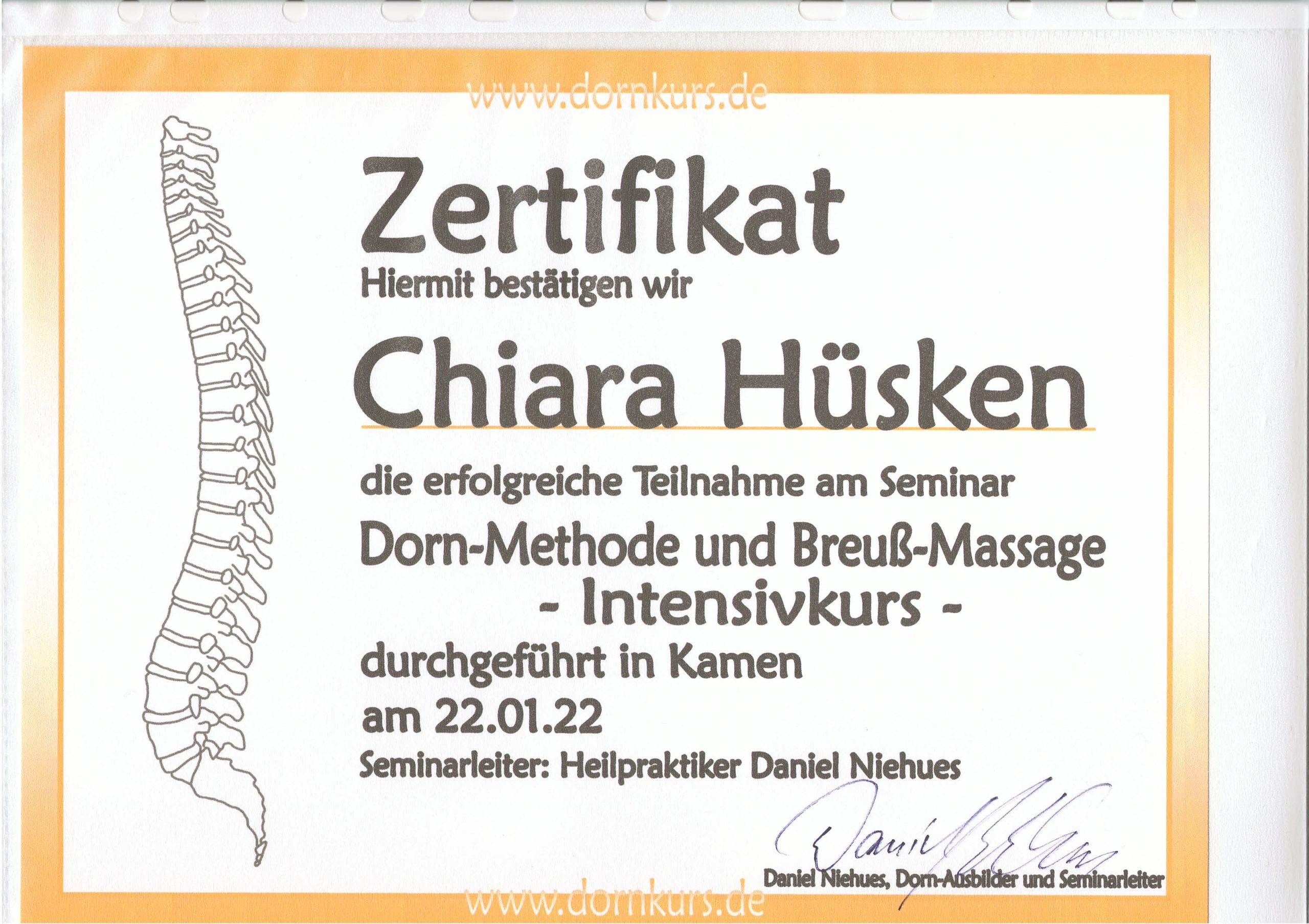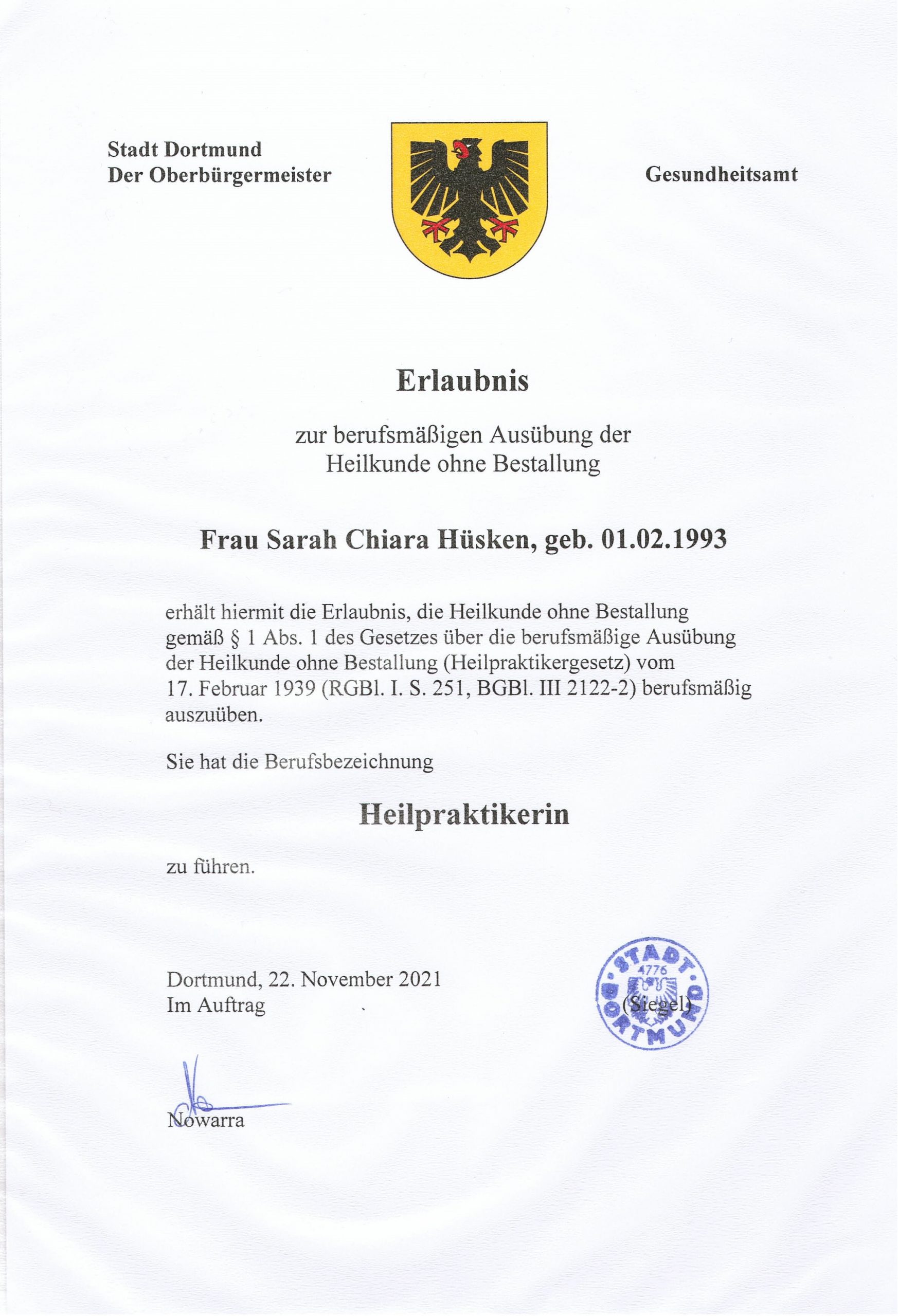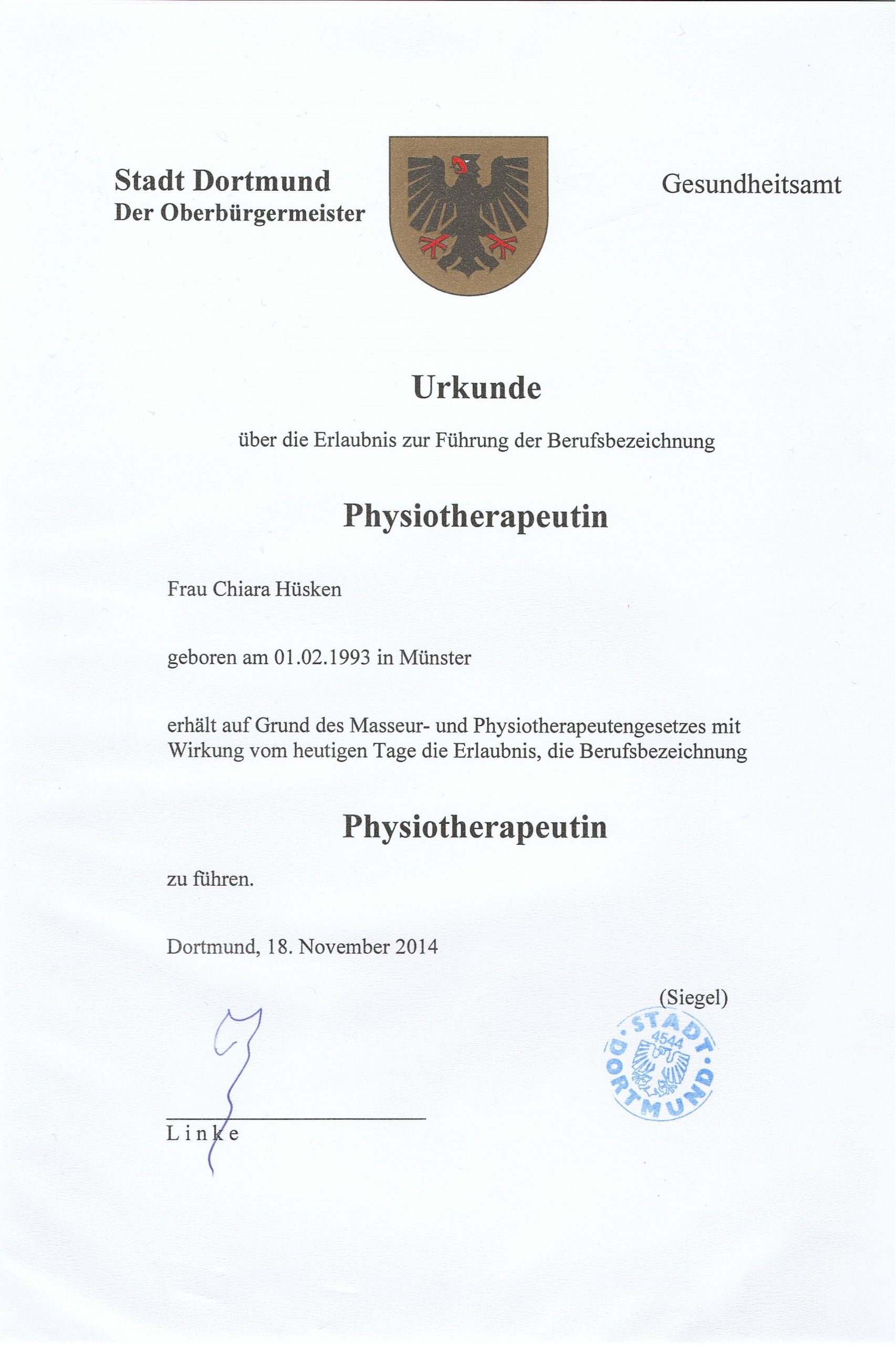 Mein Name ist Chiara Hüsken. Ich bin ausgebildete Physiotherapeutin und Heilpraktikerin. Meine Praxis ist seit Anfang 2022 in Hamm eröffnet.