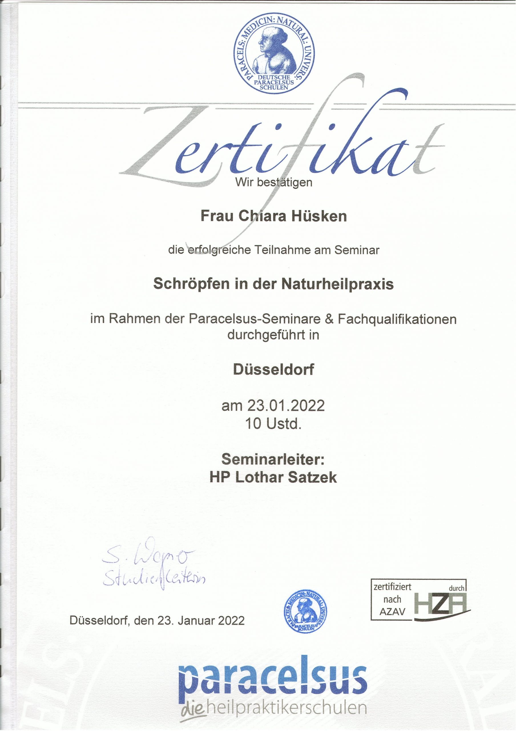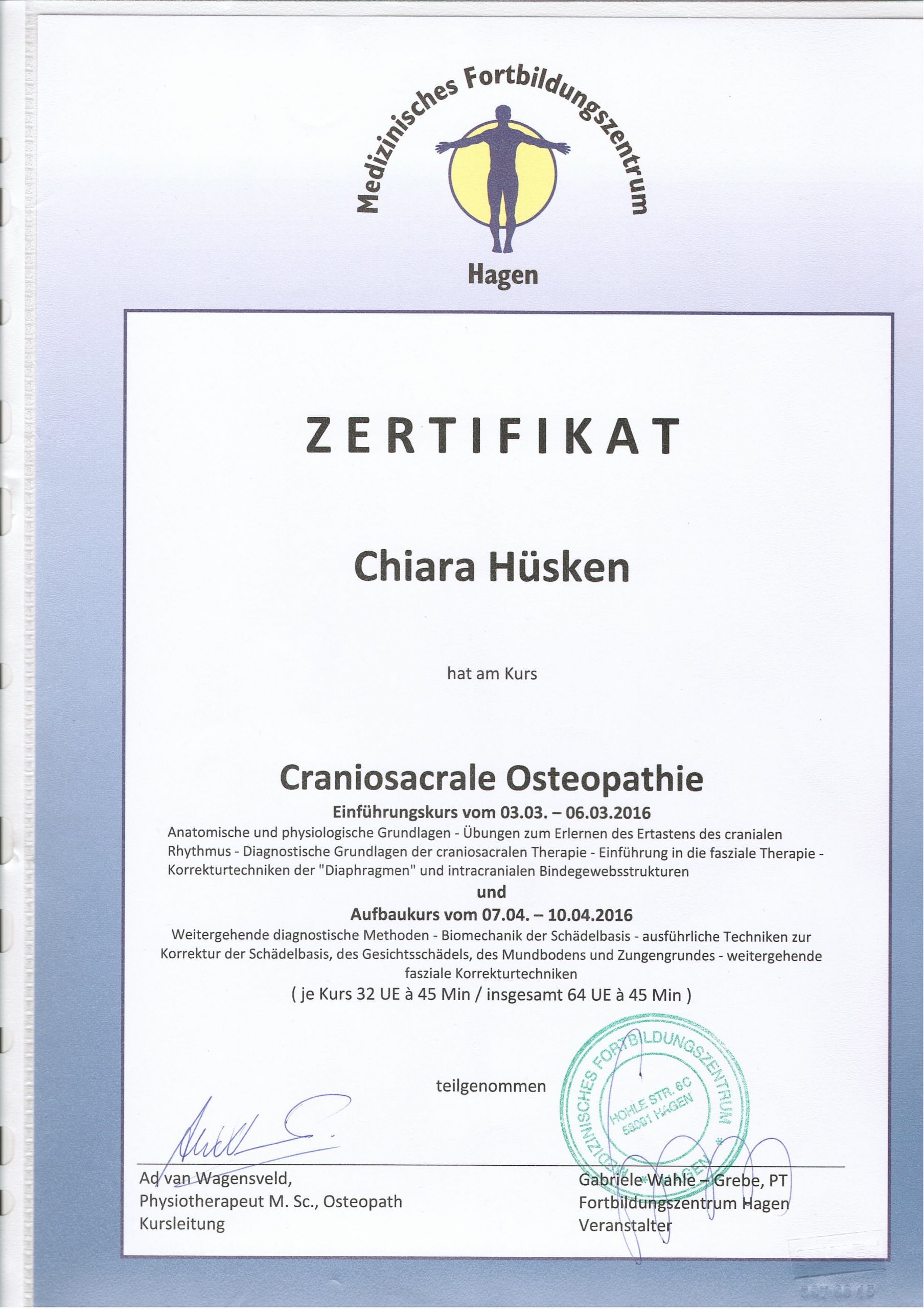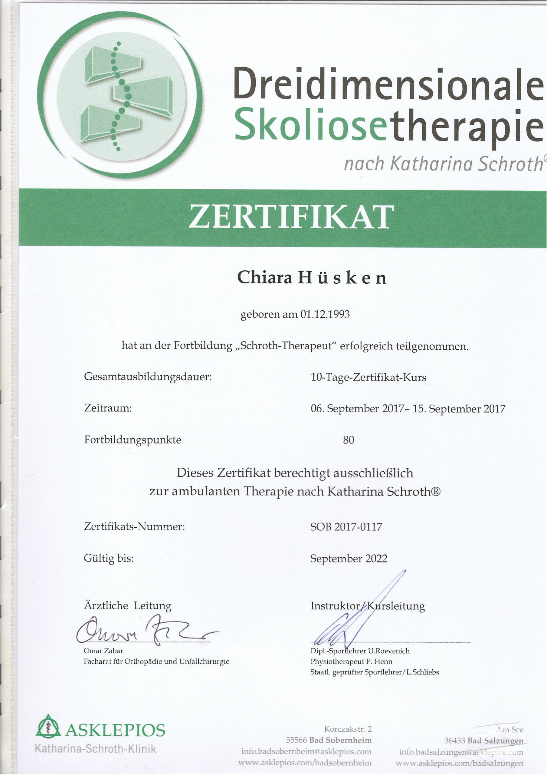 Mein Name ist Chiara Hüsken. Ich bin ausgebildete Physiotherapeutin und Heilpraktikerin. Meine Praxis ist seit Anfang 2022 in Hamm eröffnet.